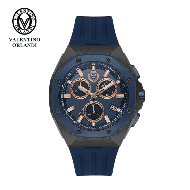 Affirmez votre style avec la Valentino Orlandi VO.1.10015-4, une montre homme tendance pensée pour les passionnés d’accessoires raffinés. Dotée d’un mouvement VR34B14, elle offre fiabilité et précision au quotidien. Son boîtier en acier solide (44x53.5MM) s’accompagne d’un bracelet en silicone bleu, à la fois léger et résistant. Le cadran embossé D.Blue avec index réels, sublimé par un traitement IP Black/IP Blue, apporte une touche moderne et élégante. Étanche à 10 BAR, elle se porte aussi bien en ville qu’en extérieur. Avec livraison gratuite en Tunisie, cette montre de luxe Valentino Orlandi est le cadeau idéal pour un homme au goût sûr.