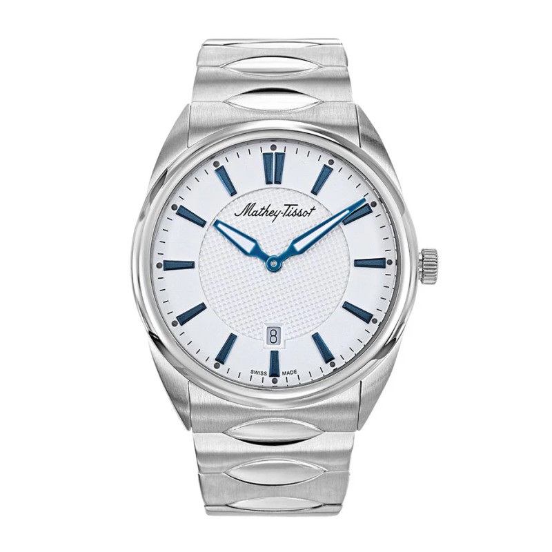 Elégant et fonctionnel, la montre Mathey-Tissot pour homme est fabriquée en Suisse, gage de qualité et de précision. Son boîtier en acier inoxydable 316L de 42 mm de diamètre et son bracelet assorti lui confèrent un look classique et robuste. Le verre saphir traité la protège des rayures du quotidien. Son mouvement à quartz Ronda 714 fiable assure une heure précise et sans entretien, et la fonction date vous permet de rester organisé. Étanche jusqu'à 5 ATM, elle résiste aux éclaboussures et à la pluie. Avec ses index luminescents et son cadran blanc sobre, elle est lisible de jour comme de nuit. Un garde-temps idéal pour l'homme moderne qui recherche un équilibre entre style et praticité.