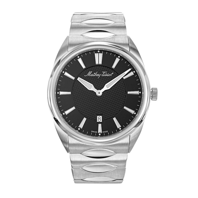 Elégant et fonctionnel, la montre Mathey-Tissot H791AN pour homme est fabriquée en Suisse, gage de qualité et de précision. Son boitier en acier inoxydable 316L de 42 mm de diamètre et son bracelet assorti lui confèrent une allure robuste et moderne. Le verre saphir traité et le fond en acier garantissent une protection optimale contre les rayures et les chocs du quotidien, jusqu'à 5 ATM de pression. Le mouvement à quartz Ronda 714 assure une fiabilité et une exactitude durables, complétées par un affichage à date pratique. Sobre et chic avec son cadran noir et ses index, cette montre illuminera vos poignets grâce à ses aiguilles luminescentes Super LumiNova.