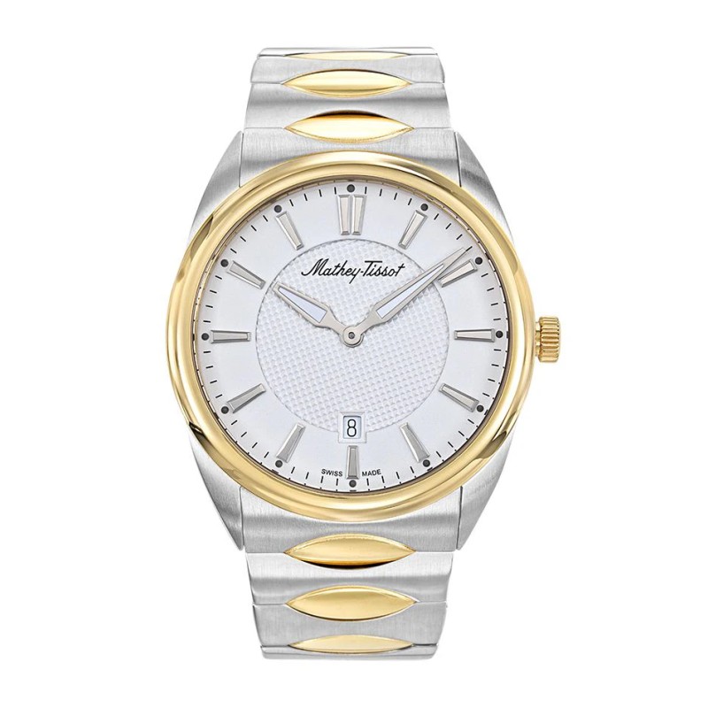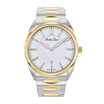 Elégance et robustesse résumées en une montre : la Mathey-Tissot Swiss Made pour homme est votre compagne idéale au quotidien. Son boîtier en acier inoxydable 316L de 42 mm abrite un mouvement à quartz Ronda 714 fiable et précis, affichant la date pour une gestion optimale de votre temps. Le verre saphir traité renforce la résistance face aux rayures tandis que le fond en acier vissé et une étanchéité de 5 ATM vous garantissent une tranquillité d'esprit. Son bracelet bicolore (argent et doré jaune) en acier inoxydable 316L confère une touche sophistiquée à l'ensemble. Luminescentes, ses aiguilles restent parfaitement lisibles même en faible luminosité. Avec son épaisseur de seulement 8 mm, elle se glisse confortablement sous n'importe quelle manche.